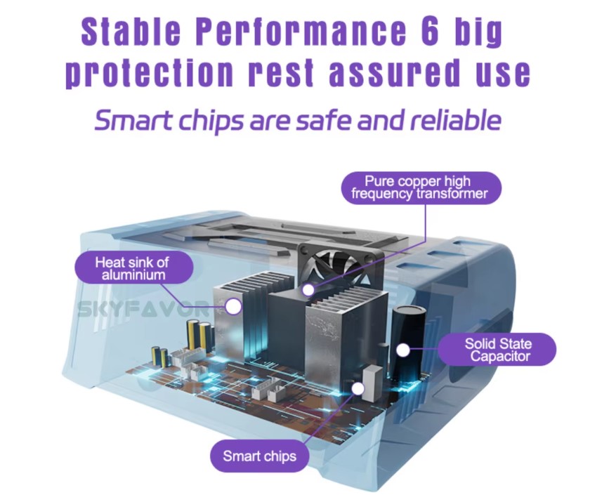 1.The charging current is automatically adjusted,with a peak current of 11A for fast charging,Automatically adjust the charging current size