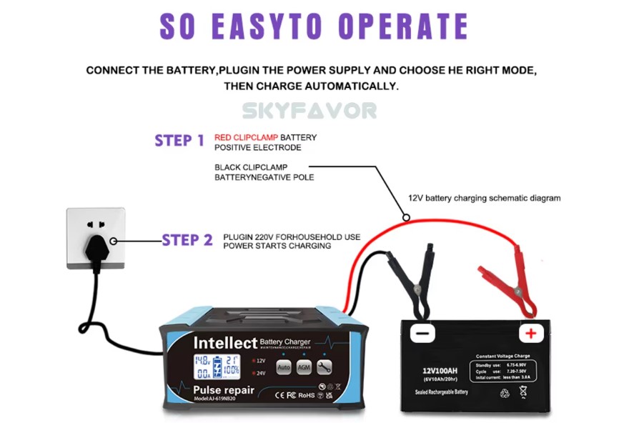 2. Can be charged with lead-acid batteries, water batteries, dry batteries, maintenance-free batteries – AGM start-stop battery;